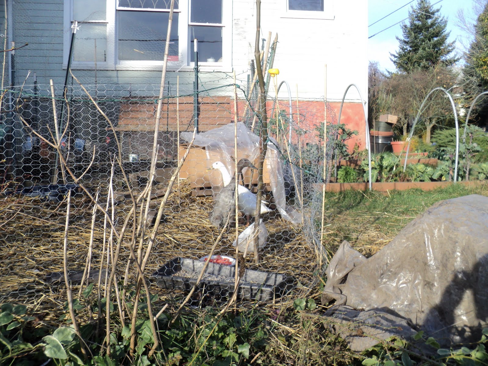 I forgot to bring my camera yesterday when we walked the streets east of Wallingford Avenue and missed getting shots of some interesting art work (a pig on a porch, an old wooden row boat in a front yard, etc.), lovely, tree-lined streets and lots of tree swings. We did see more tree swings today; I've probably seen over 20 in Wallingford and I still have about a third of the neighborhood left to walk. I did get a shot of a yard where chickens and ducks were being raised and another with two polar bears on skis (which was interesting because we had just attended the Polar Bear Plunge at Matthew's Beach where our daughter and some friends were taking the plunge).